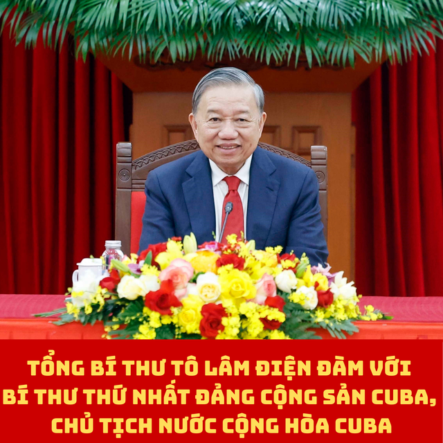 Tối 26/1, Tổng Bí thư Tô Lâm đã điện đàm với Bí thư thứ nhất Đảng Cộng sản Cuba, Chủ tịch nước Cộng hòa Cuba Miguel Diaz-Canel.