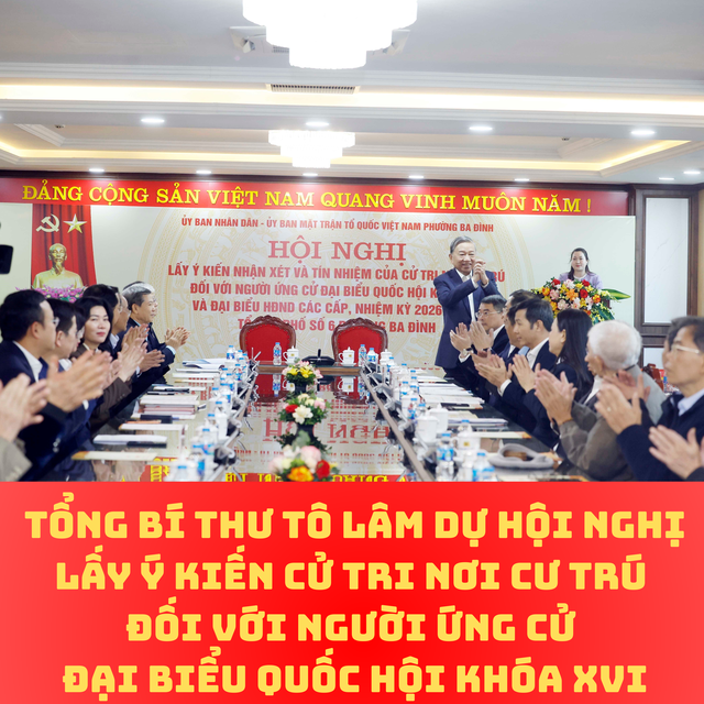 Tại hội nghị, cử tri đã nghe giới thiệu các tiêu chuẩn của người ứng cử đại biểu Quốc hội khóa XVI và tóm tắt tiểu sử 7 người ứng cử, hiện đang cư trú trên địa bàn phường Ba Đình, gồm: Tổng Bí thư Tô Lâm; Chủ tịch Quốc hội Trần Thanh Mẫn; Thường trực Ban Bí thư Trần Cẩm Tú; Phó Chủ tịch Thường trực Quốc hội Đỗ Văn Chiến; Trưởng ban Tổ chức Trung ương Lê Minh Hưng; Trưởng ban Nội chính Trung ương Lê Minh Trí; Chủ nhiệm Văn phòng Chủ tịch nước Lê Khánh Hải.