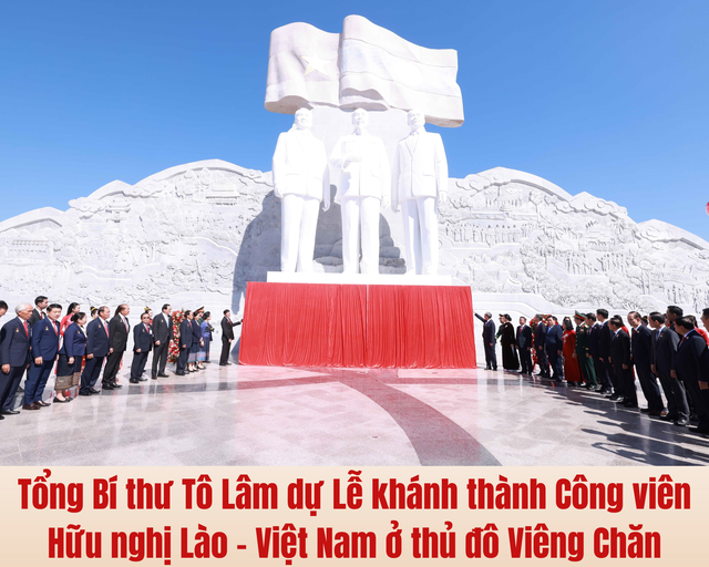 Trong khuôn khổ chuyến thăm cấp Nhà nước Cộng hòa Dân chủ Nhân dân Lào, dự Lễ kỷ niệm 50 năm Quốc khánh nước Cộng hòa Dân chủ Nhân dân Lào và đồng chủ trì Cuộc gặp cấp cao giữa Đảng Cộng sản Việt Nam và Đảng Nhân dân Cách mạng Lào, trưa 2/12, Tổng Bí thư Tô Lâm và Phu nhân cùng đoàn Đại biểu cấp cao Việt Nam đã dự Lễ khánh thành Công viên Hữu nghị Lào - Việt Nam ở thủ đô Viêng Chăn.