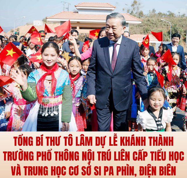 Tổng Bí thư khẳng định, việc khánh thành Trường Phổ thông nội trú liên cấp Tiểu học và Trung học Cơ sở Si Pa Phìn, không chỉ là niềm vui của riêng địa phương, mà còn là một dấu mốc quan trọng trong việc hiện thực hóa chủ trương lớn của Đảng về chăm lo sự nghiệp trồng người, vì tương lai đất nước, vì hạnh phúc của nhân dân. Từ mô hình này, tinh thần kỷ luật thực thi, trách nhiệm hành động và quyết tâm đổi mới sẽ tiếp tục được lan tỏa, để mỗi chủ trương đúng đắn của Đảng đều được kiểm chứng bằng những công trình, kết quả cụ thể, thiết thực.
