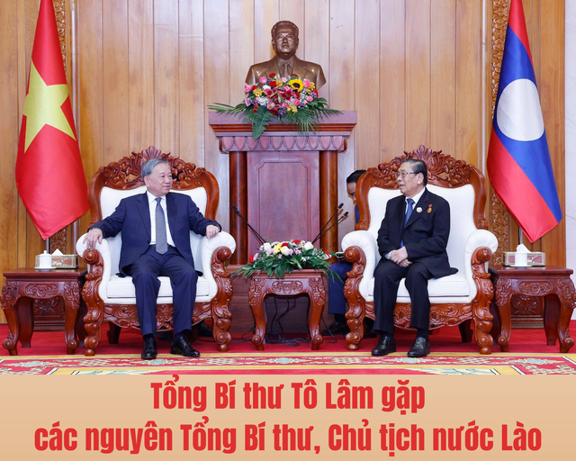 Tổng Bí thư Tô Lâm bày tỏ xúc động được gặp lại các đồng chí nguyên lãnh đạo, những người bạn thân thiết luôn gắn bó với Việt Nam, luôn dành tình cảm và sự ủng hộ trước sau như một đối với Đảng, Nhà nước và nhân dân Việt Nam, có nhiều đóng góp cho quan hệ hai nước trong mọi hoàn cảnh. Tổng Bí thư cảm ơn các đồng chí nguyên lãnh đạo Lào luôn quan tâm theo dõi sự phát triển của Việt Nam và tình cảm dành cho các thế hệ lãnh đạo Việt Nam. Tổng Bí thư chuyển lời thăm hỏi và lời chúc sức khoẻ của các đồng chí lãnh đạo, nguyên lãnh đạo Đảng và Nhà nước Việt Nam tới các đồng chí nguyên lãnh đạo Lào.