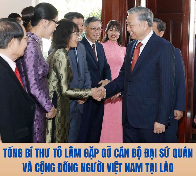 Tổng Bí thư Tô Lâm đề nghị Đại sứ quán Việt Nam và các cơ quan đại diện Việt Nam tại Lào tiếp tục thực hiện tốt công tác bảo hộ công dân, hỗ trợ pháp lý, tạo điều kiện thuận lợi để bà con hướng về quê hương, đầu tư và đóng góp cho sự phát triển của đất nước.