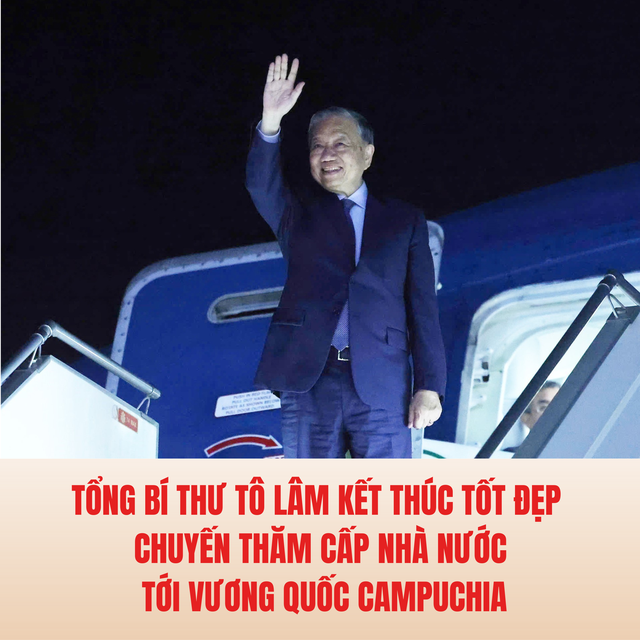 Tối 6/2, Tổng Bí thư Tô Lâm và đoàn đại biểu cấp cao Việt Nam đã rời thủ đô Phnom Penh, kết thúc tốt đẹp chuyến thăm cấp Nhà nước tới Campuchia; đồng chủ trì Cuộc gặp cấp cao giữa Bộ Chính trị Trung ương Đảng Cộng sản Việt Nam và Ban Thường vụ Trung ương Đảng Nhân dân Campuchia và đồng chủ trì Cuộc gặp giữa ba Người đứng đầu ba Đảng Việt Nam – Campuchia – Lào tại Campuchia trong ngày 6/2.
