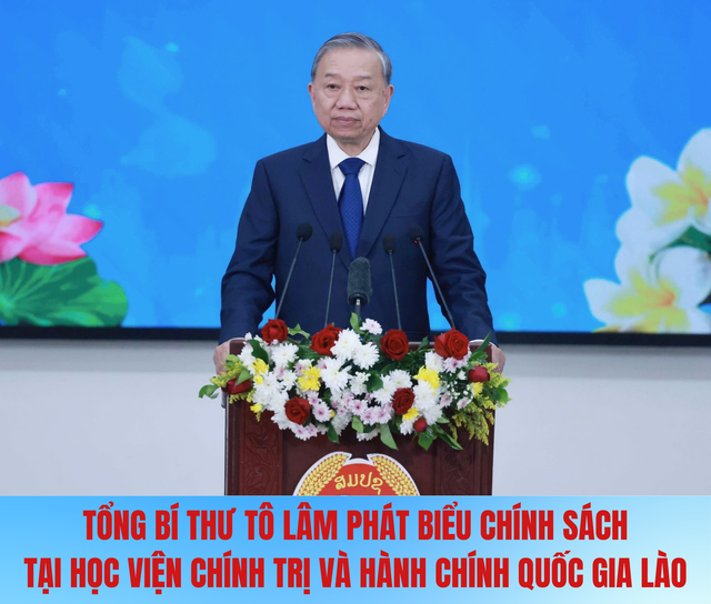 Tổng Bí thư Tô Lâm đã phát biểu chính sách với chủ đề: Kế thừa tình hữu nghị vĩ đại, vun đắp quan hệ đoàn kết đặc biệt, củng cố hợp tác toàn diện và đẩy mạnh gắn kết chiến lược Việt Nam - Lào trong giai đoạn mới.