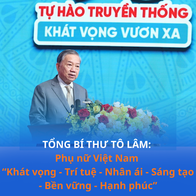 Phát biểu tại Lễ kỷ niệm, Tổng Bí thư Tô Lâm bày tỏ lòng biết ơn sâu sắc tới các Mẹ Việt Nam Anh hùng, các bà, các mẹ, các chị -những người đã dành trọn đời cho Tổ quốc và cho gia đình; gửi lời chúc mừng nồng nhiệt tới các tập thể, cá nhân điển hình tiên tiến được tôn vinh hôm nay - những bông hoa đẹp trong vườn hoa thi đua của cả nước và mong tiếp tục tỏa hương, lan tỏa những điều tốt đẹp, dìu dắt lớp lớp phụ nữ trẻ vươn lên.