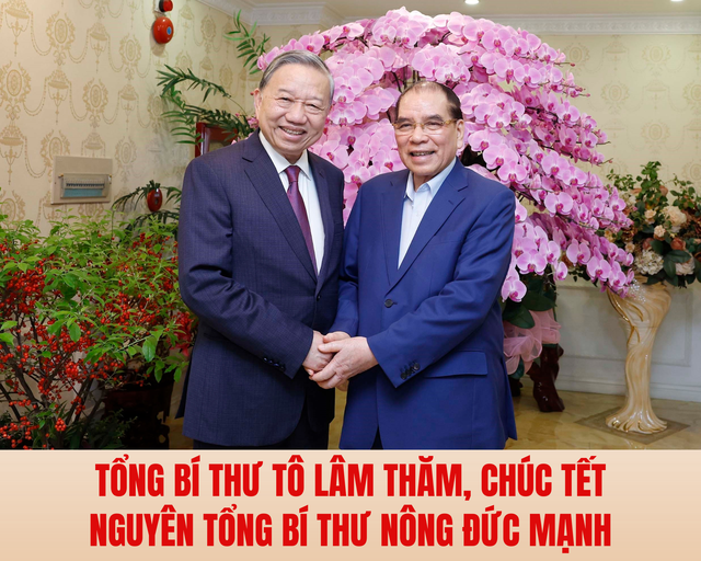 Nhân dịp kỷ niệm 96 năm Ngày thành lập Đảng Cộng sản Việt Nam (3/2/1930 - 3/2/2026), chào mừng thành công Đại hội đại biểu toàn quốc lần thứ XIV của Đảng và chuẩn bị đón Tết Nguyên đán Bính Ngọ 2026, chiều 2/2, tại Hà Nội, Tổng Bí thư Tô Lâm đã tới thăm, chúc Tết nguyên Tổng Bí thư Nông Đức Mạnh và gia đình.