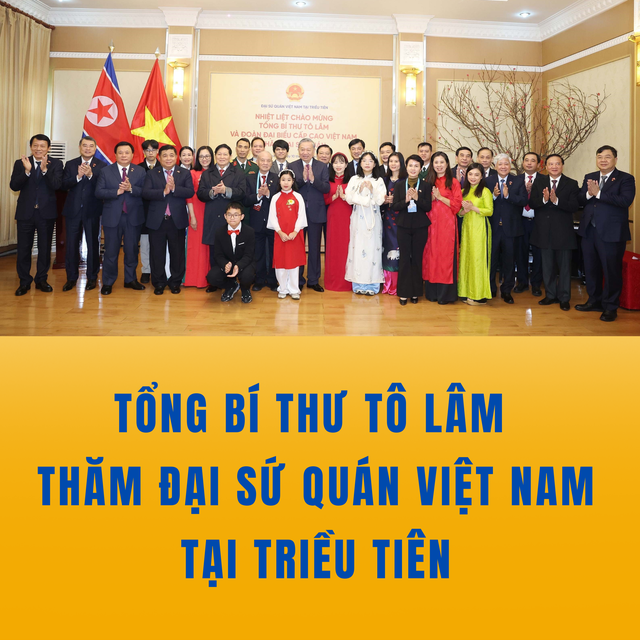 Phát biểu bày tỏ vui mừng đến thăm Đại sứ quán Việt Nam tại Triều Tiên và gửi tới tập thể cán bộ, nhân viên Đại sứ quán và gia đình lời thăm hỏi ân cần, lời chúc sức khỏe, hạnh phúc, Tổng Bí thư Tô Lâm nhấn mạnh, chuyến thăm cấp Nhà nước tới Triều Tiên lần này là hoạt động đối ngoại đặc biệt quan trọng diễn ra trong bối cảnh kỷ niệm 75 năm thiết lập quan hệ ngoại giao Việt Nam - Triều Tiên (31/1/1950 - 31/1/2025). Đây là dịp quan trọng để khẳng định lập trường nhất quán của Đảng, Nhà nước và nhân dân Việt Nam luôn coi trọng và mong muốn duy trì và phát triển hơn nữa quan hệ hữu nghị truyền thống với Đảng, Nhà nước và nhân dân Triều Tiên.