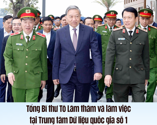 Phát biểu tại buổi làm việc, thay mặt lãnh đạo Đảng, Nhà nước và Ban Chỉ đạo Trung ương về phát triển khoa học, công nghệ, đổi mới sáng tạo và chuyển đổi số, Tổng Bí thư Tô Lâm ghi nhận sự nỗ lực, cố gắng vượt bậc và biểu dương kết quả, thành tích mà Bộ Công an, các Bộ, ngành liên quan và toàn thể cán bộ, chiến sĩ tại Trung tâm Dữ liệu quốc gia đã đạt được trong xây dựng và vận hành Trung tâm Dữ liệu quốc gia số 1 thời gian qua.