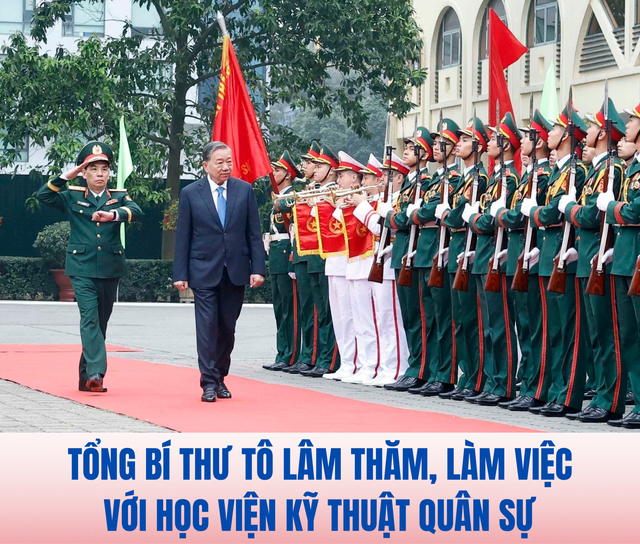 Phát biểu tại Học viện Kỹ thuật quân sự, thay mặt lãnh đạo Đảng, Nhà nước, Tổng Bí thư Tô Lâm chúc mừng, ghi nhận và biểu dương toàn thể cán bộ, giảng viên, nhân viên, học viên, sinh viên, chiến sĩ toàn Học viện về những kết quả, thành tích đã đạt được trong thời gian qua.