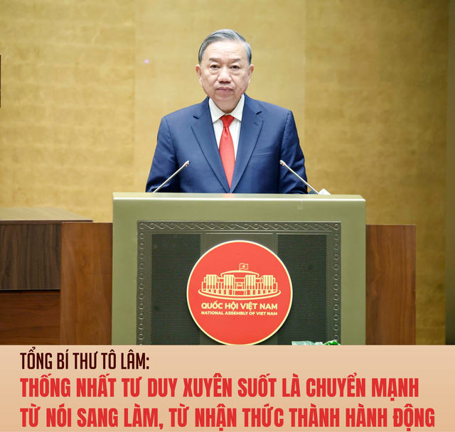 Để đáp ứng yêu cầu ngày càng cao đối với tiến trình phát triển của đất nước trong giai đoạn mới, Tổng Bí thư đề nghị phải thống nhất và dứt khoát về tư duy xuyên suốt là chuyển mạnh từ "nói" sang "làm", từ nhận thức thành hành động. Văn kiện Đại hội đã chỉ rõ, cần kiên quyết khắc phục triệt để tình trạng "nói nhiều làm ít", "nói hay, làm dở", "nói không đi đôi với làm", chấm dứt lối làm việc quan liêu, hình thức. Mỗi cấp ủy, mỗi tổ chức đảng, mỗi cán bộ, đảng viên, đặc biệt người đứng đầu, phải nêu cao tinh thần trách nhiệm, gương mẫu đi đầu trong việc biến quyết sách thành hiện thực.