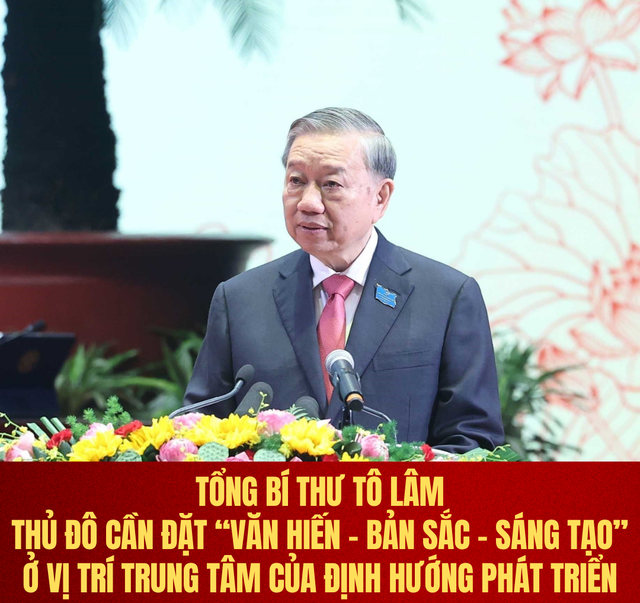 “Hà Nội phải được kiến tạo như một “Thành phố văn hiến- bản sắc-sáng tạo”, hướng tới một “Thủ đô văn minh- hiện đại-bền vững” với trí tuệ thời đại và tầm vóc toàn cầu: nơi Văn hiến là gốc rễ, kết tinh trí tuệ dân tộc, nuôi dưỡng niềm tin, khát vọng và bản lĩnh, tạo sức hấp dẫn riêng có mà không đô thị nào sao chép được; bản sắc là điểm tựa, lợi thế cạnh tranh cốt lõi, giúp Hà Nội không chỉ giữ được linh hồn lịch sử mà còn tạo ra sức hút để dẫn dắt sáng tạo, phát triển kinh tế tri thức, thu hút nhân tài; sáng tạo là động lực phát triển, chuyển hóa, biến di sản thành giá trị sống, vừa bảo tồn, vừa phát triển, vừa mở rộng tầm vóc đô thị, từ quy hoạch, kiến trúc, nghệ thuật đến giáo dục, khoa học và quản trị”, Tổng Bí thư nhấn mạnh.