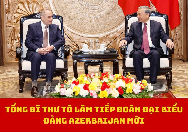 Ngày 26/1, tại Trụ sở Trung ương Đảng, Tổng Bí thư Tô Lâm đã tiếp Đoàn đại biểu Đảng Azerbaijan Mới do ông Tahir Budagov, Phó Chủ tịch kiêm Chánh Văn phòng Trung ương Đảng dẫn đầu đến chúc mừng Tổng Bí thư và Ban Chấp hành Trung ương Đảng Cộng sản Việt Nam đã tổ chức thành công Đại hội XIV.