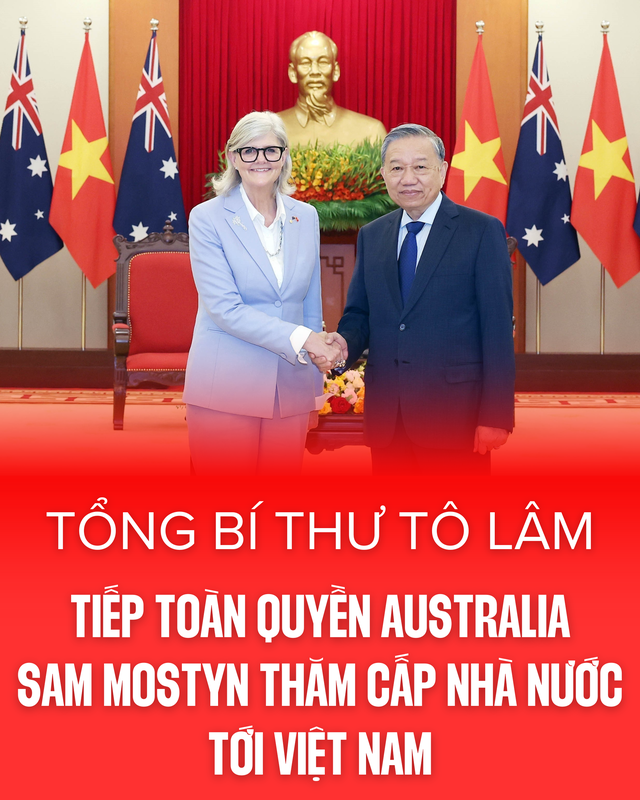 Toàn quyền Australia Sam Mostyn cảm ơn Tổng Bí thư Tô Lâm đã dành thời gian tiếp; bày tỏ ấn tượng tốt đẹp về đất nước, con người và truyền thống lịch sử, văn hóa đậm đà bản sắc dân tộc của Việt Nam cũng như tinh thần lạc quan, kiên cường của nhân dân Việt Nam trong quá trình dựng xây đất nước; chúc mừng những thành tựu quan trọng mà Đảng và Nhà nước Việt Nam đạt được trong thời gian qua. Toàn quyền Australia nhấn mạnh Việt Nam là một trong những đối tác tin cậy nhất của Australia, mong muốn hai bên tiếp tục phối hợp chặt chẽ trên tất cả các lĩnh vực để hướng đến một khu vực hòa bình, ổn định, phát triển thịnh vượng.