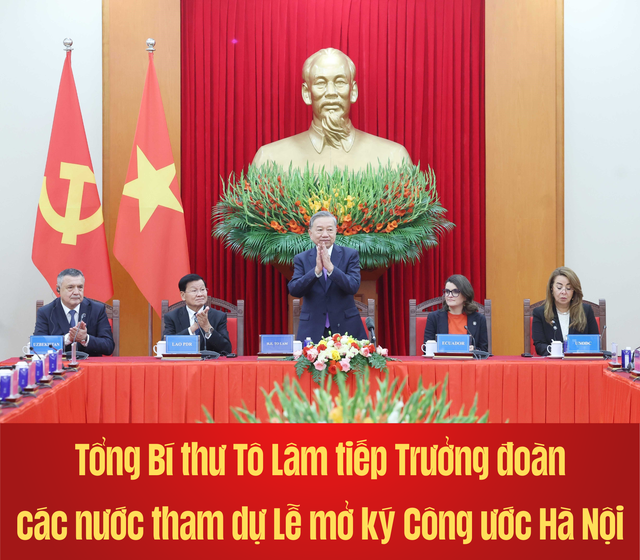 Chiều 25/10/2025, tại Trụ sở Trung ương Đảng, Tổng Bí thư Tô Lâm tiếp Trưởng đoàn các nước tham dự Lễ mở ký Công ước Liên hợp quốc về Chống tội phạm mạng (Công ước Hà Nội).