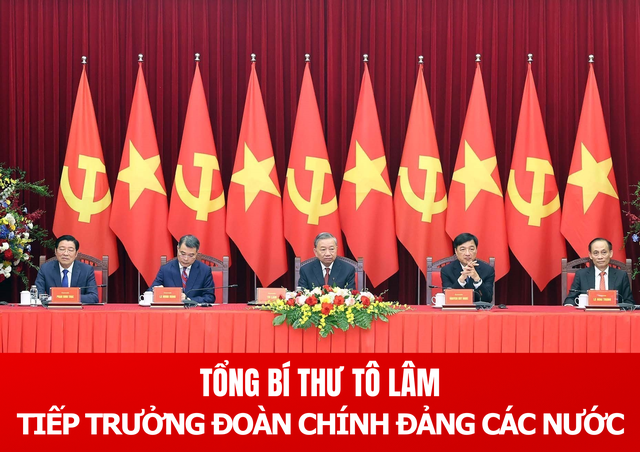 Chiều 1/9, tại Trụ sở Trung ương Đảng, Tổng Bí thư Tô Lâm đã tiếp đoàn các lãnh đạo, đại diện lãnh đạo chính đảng nhiều nước từ các khu vực châu Á, châu Âu, châu Mỹ và châu Phi đến Việt Nam tham dự Lễ kỷ niệm 80 năm Cách mạng tháng Tám và Quốc khánh nước Cộng hòa xã hội chủ nghĩa Việt Nam (2/9/1945 - 2/9/2025).