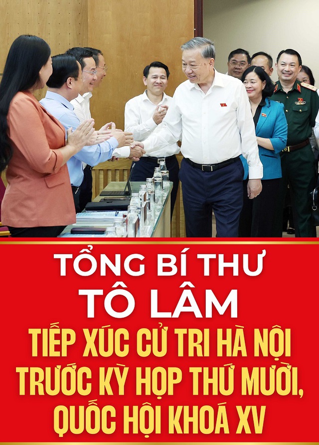 Chiều 23/9, tại Trụ sở Hội đồng nhân dân, Ủy ban nhân dân phường Ngọc Hà, Tổng Bí thư Tô Lâm cùng các thành viên Đoàn đại biểu Quốc hội thành phố Hà Nội, đơn vị bầu cử số 1 đã tiếp xúc cử tri 11 phường (Ba Đình, Ngọc Hà, Giảng Võ, Đống Đa, Kim Liên, Văn Miếu - Quốc Tử Giám, Láng, Ô Chợ Dừa, Hai Bà Trưng, Vĩnh Tuy, Bạch Mai), báo cáo dự kiến chương trình Kỳ họp thứ 10, Quốc hội khóa XV và lắng nghe các ý kiến, kiến nghị của cử tri.