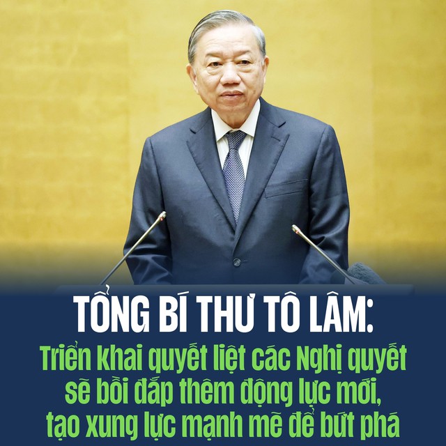 Tổng Bí thư kêu gọi toàn hệ thống chính trị, các cấp ủy, chính quyền, Mặt trận Tổ quốc và các đoàn thể; kêu gọi cộng đồng doanh nghiệp, các nhà ngoại giao, đội ngũ trí thức, nhà giáo, thầy thuốc, công nhân, nông dân, thanh niên cả nước đồng lòng, đồng sức, chung tay thực hiện. Mỗi người một việc cụ thể, mỗi ngày một kết quả cụ thể, kiên trì, bền bỉ, có phương pháp, có kỷ luật, có sáng tạo. Hãy làm cho tinh thần các Nghị quyết được triển khai hôm nay thấm vào mọi cấp, mọi ngành, vào mọi thành phần xã hội, tới trừng phường xã, làng bản, thôn xóm, tới từng lớp học, từng phân xưởng, từng cánh đồng, từng ngôi nhà, từng người dân; biến khát vọng thành hành động, biến hành động thành kết quả, biến kết quả thành niềm tin mới.
