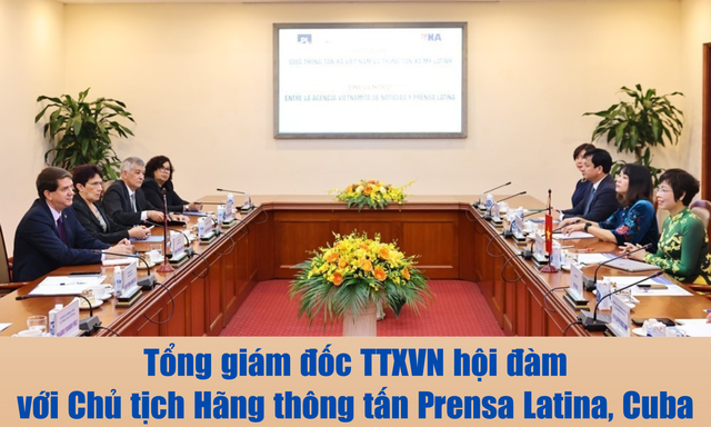 Sáng 1/12/2025, tại Hà Nội, Tổng giám đốc TTXVN Vũ Việt Trang hội đàm với đoàn lãnh đạo Hãng thông tấn Prensa Latina (Cuba) do Chủ tịch Jorge Leganõa Alonso làm trưởng đoàn.