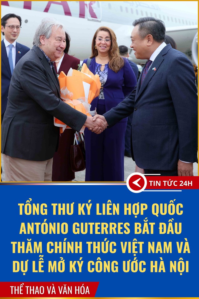 Chiều 24/10, Tổng Thư ký Liên hợp quốc António Guterres đến Hà Nội, bắt đầu thăm chính thức Việt Nam và tham dự Lễ mở ký Công ước Liên hợp quốc về chống tội phạm mạng (Công ước Hà Nội), từ ngày 24 - 25/10/2025, theo lời mời của Chủ tịch nước Lương Cường.