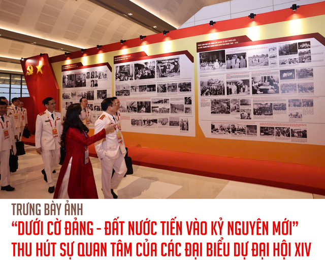 Đại biểu xem Trưng bày ảnh “Dưới cờ Đảng - Đất nước tiến vào Kỷ nguyên mới” do Thông tấn xã Việt Nam thực hiện