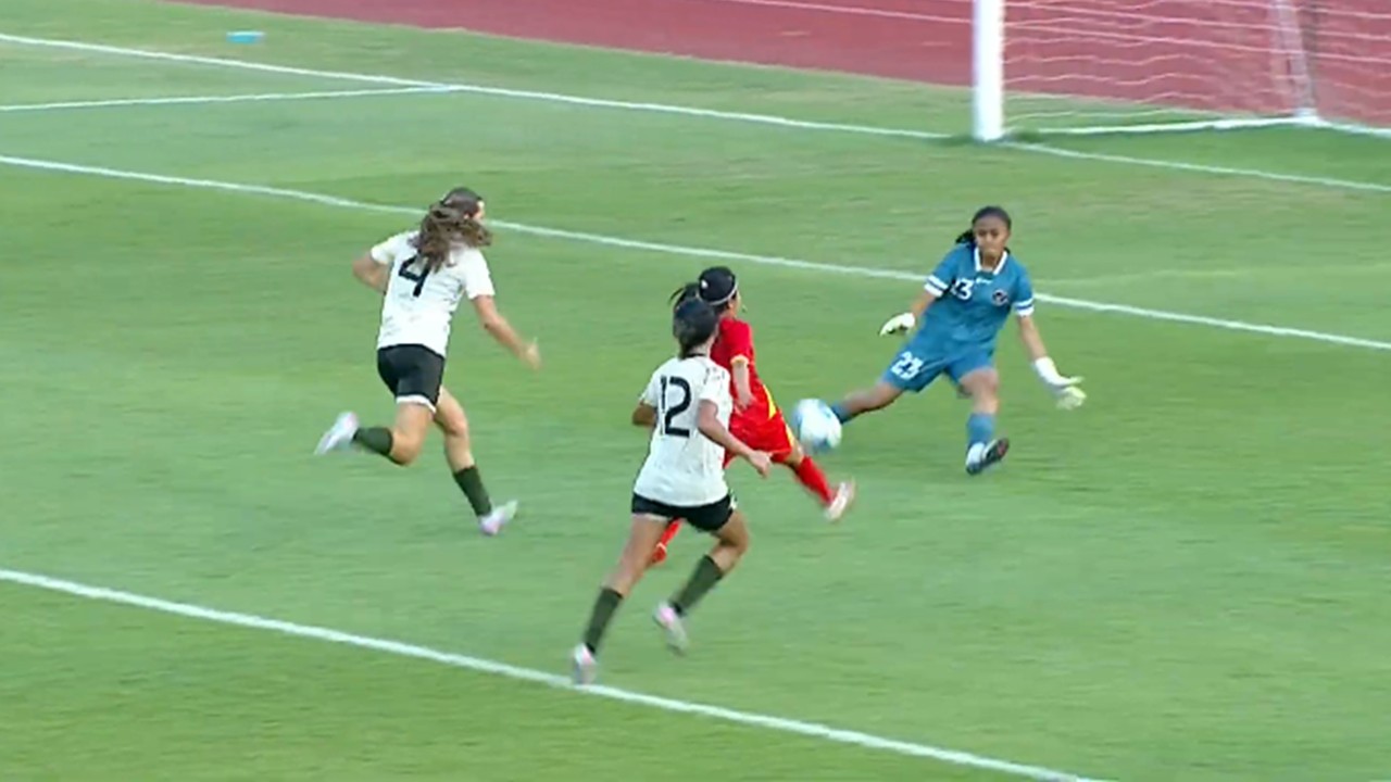 Phút 58: VÀO!!! 3-0 cho Việt Nam. Hải Yến đệm bóng thành bàn, hoàn tất cú đúp xuất sắc.